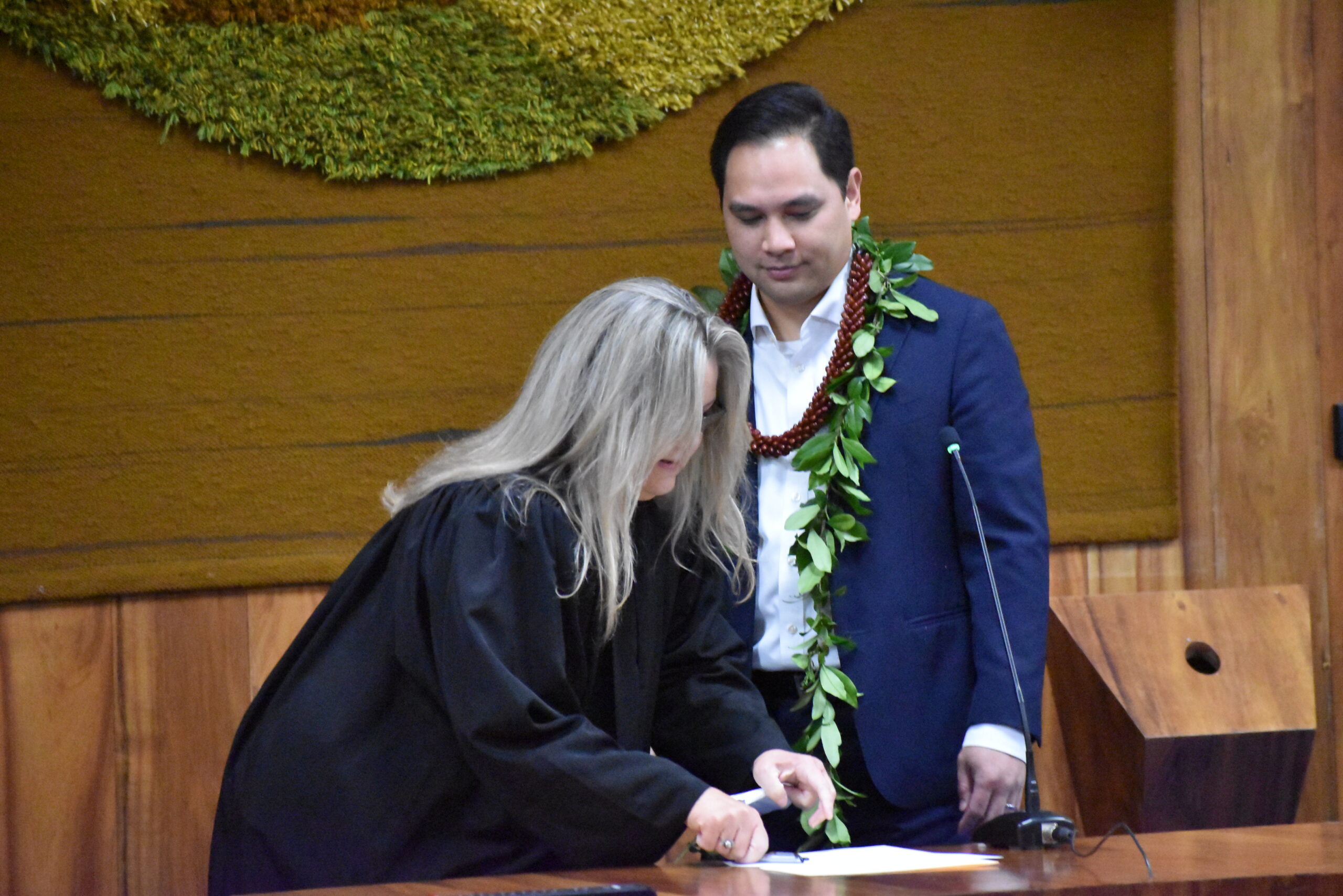 “Yesterday marked a meaningful occasion for the council,” said Lee, who holds the seat for the Wailuku-Waiheʻe-Waikapū residency area. “With Councilmember Batangan seated, the council immediately begins its work for the new year.”